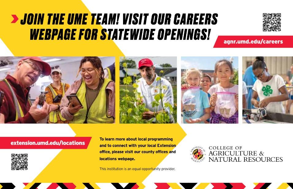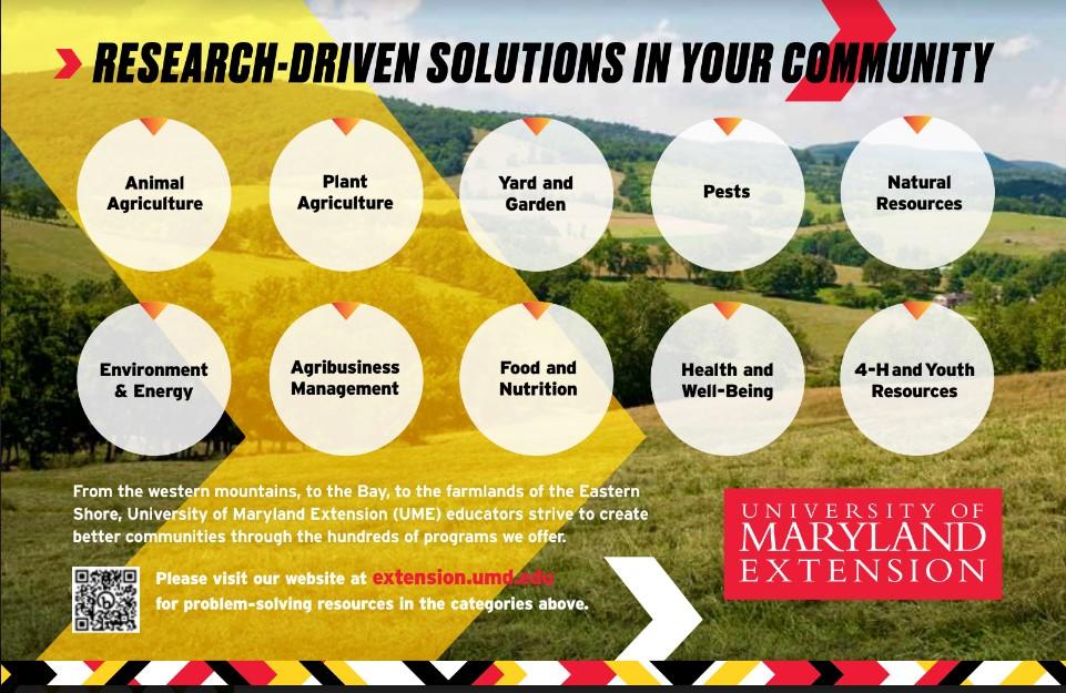 Welcome to the University of Maryland Extension (UME) of Allegany County. We are part of a statewide, non-formal education system within the College of Agriculture and Natural Resources of the University of Maryland, College Park, and the University of Maryland, Eastern Shore. This partnership also includes support from USDA as well as the county government. The Allegany County UME faculty and staff provide a broad range of outreach through workshops, seminars, classes, clinics, newsletters, consultations, and media efforts.