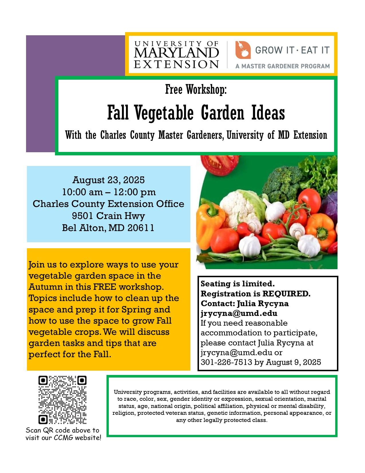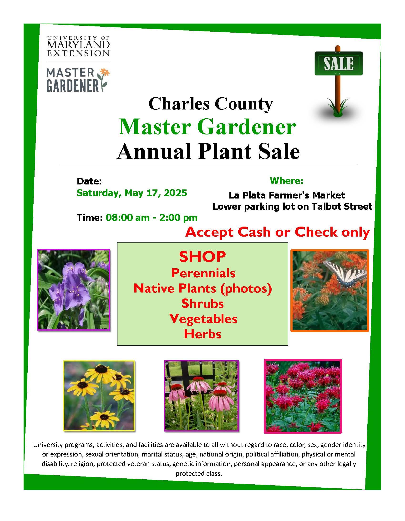 If you or your organization in Charles County would like assistance with planting techniques, or design, or would like to request a gardening presentation, please complete this form.
