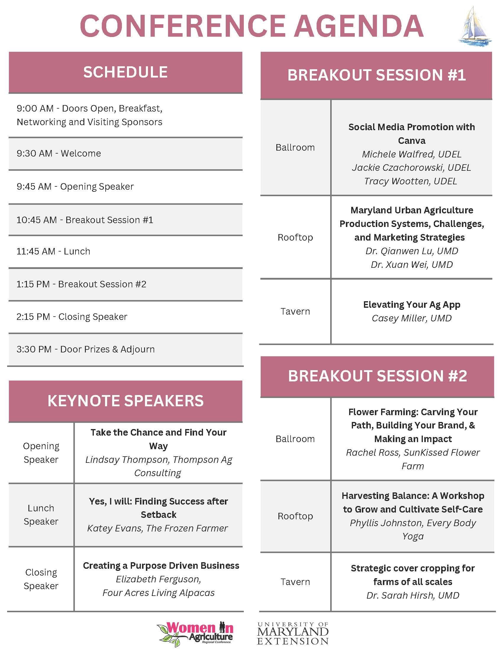 | 8:30 a.m. to 9:00 a.m. | Welcome Jenny Rhodes & Shannon Dill, University of Maryland; Tracy Wootten & Laurie Wolinski, University of Delaware |