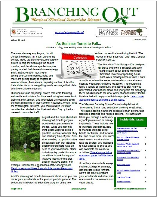 For more than 30 years, Branching Out has kept Maryland woodland owners and managers informed about ways to develop and enhance their natural areas, how to identify and control invasive plants and insects, and about news and regional online and in-person events.