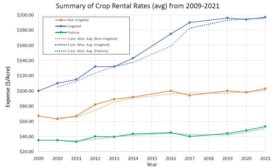 IRRIGATED LAND RENTAL RATES BY COUNTY (2021-2025)