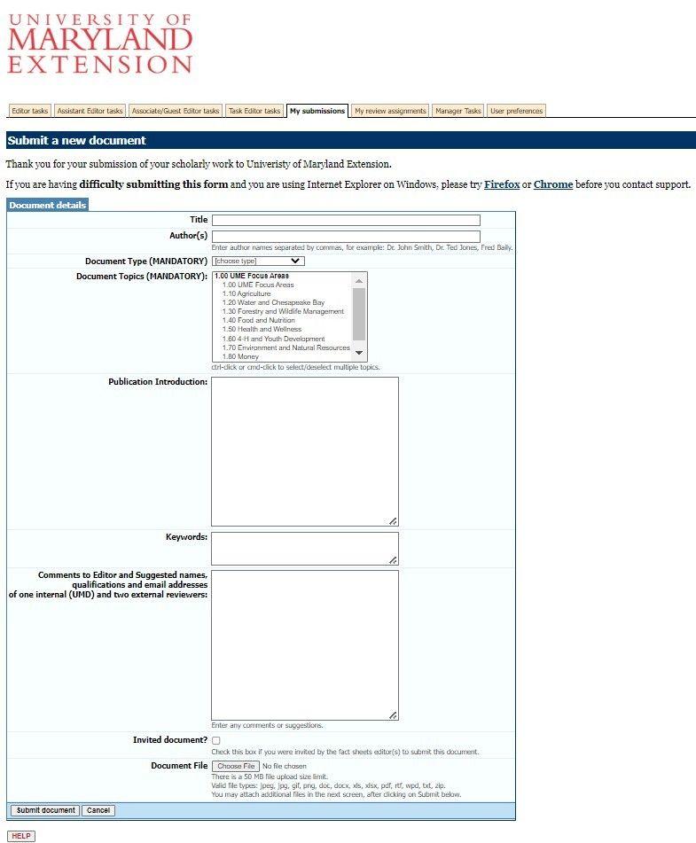 The University of Maryland Extension adopted the FastTrack system to manage publications in 2012. It allows submitting authors, the managing editor, and the layout and publication specialist to see all the items related to a submission in one place. As a submitting author, your submission page should be your first stop when determining your draft’s status in the publishing process.