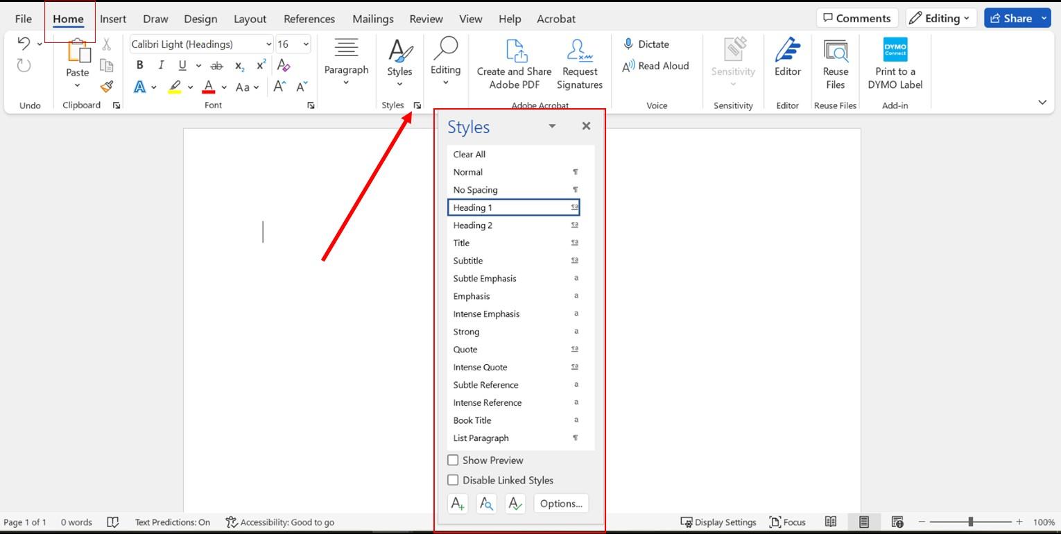 Microsoft Word has nine preset style levels available to help you format your manuscript. To access these presets, follow these steps: