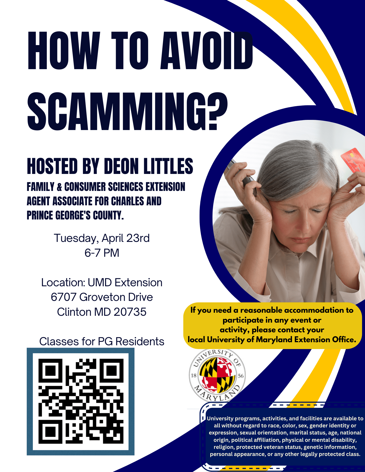 During these challenging times, more people are concerned about their financial future. The University of Maryland Extension offers educational programs, applied research projects, and lots of practical information that will empower our community to make informed financial choices and improve the personal finances of our residents.