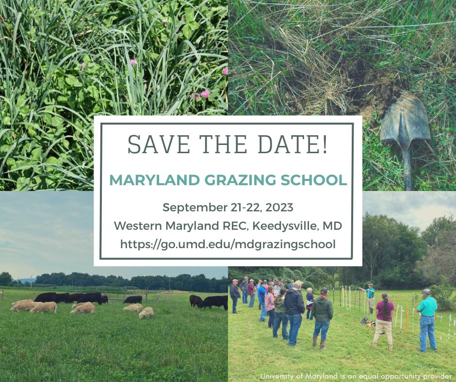 The Maryland Grazing School will be held from 8 a.m. to 5 p.m. over two days on September 21-22, 2023 at the Western Maryland Research and Education Center in Keedysville, MD. Designed with producer interests in mind, this 2-day grazing school will offer a more in-depth education on pasture and grazing management.