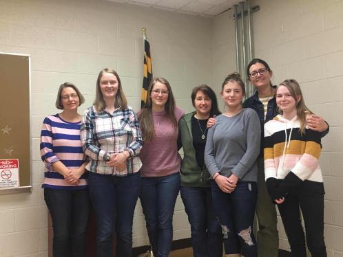 The 2019 outgoing officers, Raven Haller, president, Leah Hintze, vice-president/corresponding secretary, Charlotte Krispin, recording secretary and Ben Lawrence, treasurer passed on their officer pins to incoming 2020 officers, Charlotte Krispin, president, Virginia Johnston, vice-president/corresponding secretary, Lillie Lawrence, recording secretary, Leah Hintze, treasurer. The outgoing officers also received certificates of leadership and received their past officer pins.