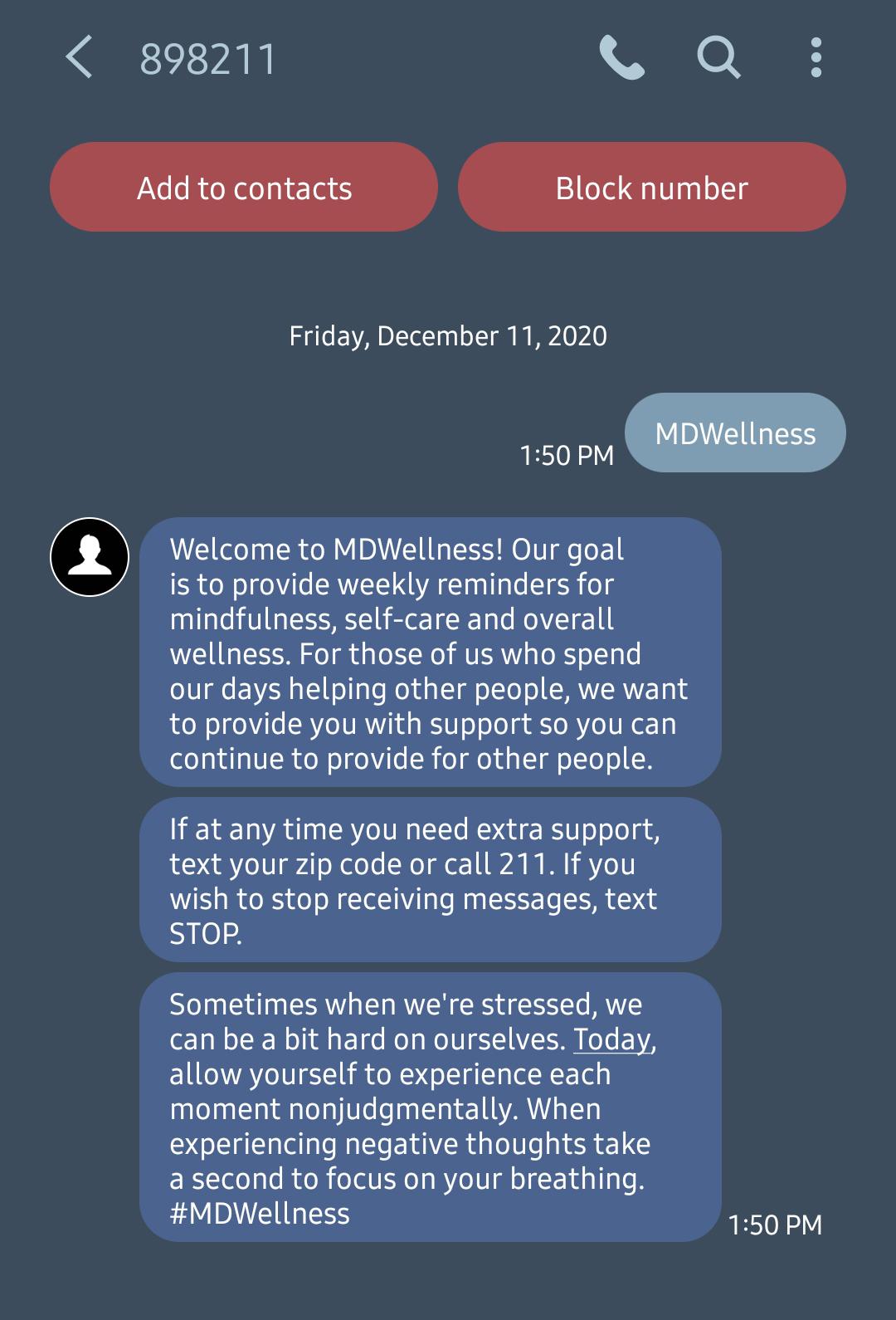 Though healthcare workers were targeted for this new service due to their increased demands due to COVID-19, the service is available and useful for anyone needing reminders to engage in self-care practices and healthy routines.