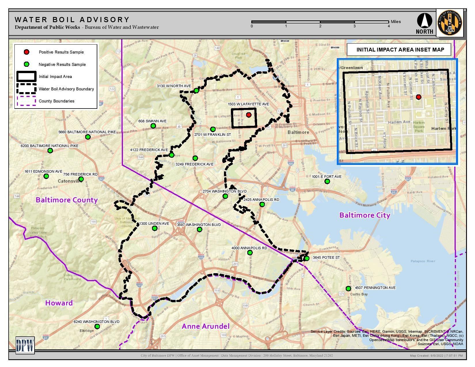 The Baltimore City Department of Public Works has issued a Required Boil Water Advisory for parts of Baltimore City, and a Precautionary Boil Water Advisory for a larger portion of the city and part of Baltimore County. E. coli has been identified in municipal water in the neighborhoods of Sandtown-Winchester and Harlem Park. For updates, check the Baltimore City DPW news feed: https://publicworks.baltimorecity.gov/news.