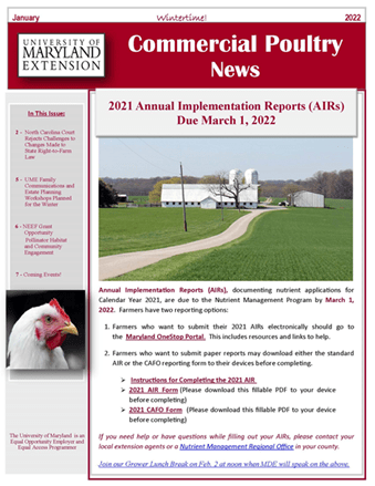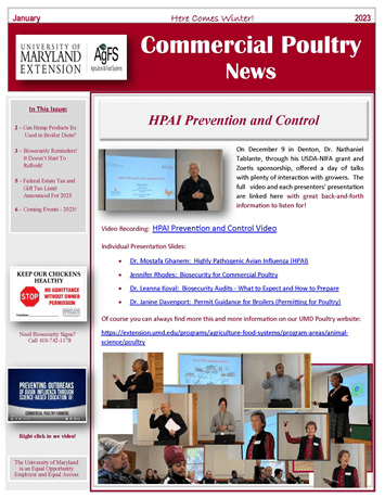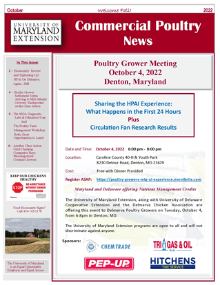 The Commercial Poultry Newsletter comes out quarterly to address topics in the poultry industry that you may learn from, news that needs your attention, and also we try to celebrate our growers and industry here in Delmarva.