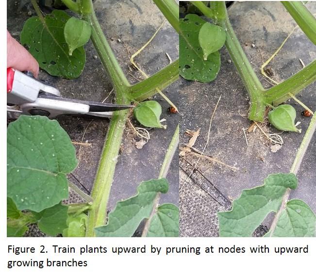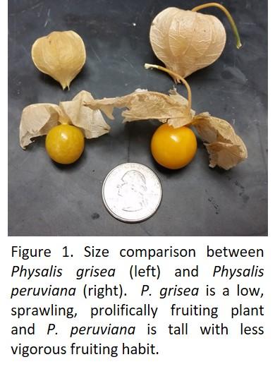 There are two species being produced, Physalis peruviana and Physalis grisea. P. peruviana is a very large upright plant with a vigorous growth habit. The fruit tastes of citrus flavors. Physalis grisea is a prostrate, sprawing plant with fruit having an intricate sweet flavor of pineapple and melons (Figures 1 and 2). Physailis grisea is also known as ground cherry or husk cherry.