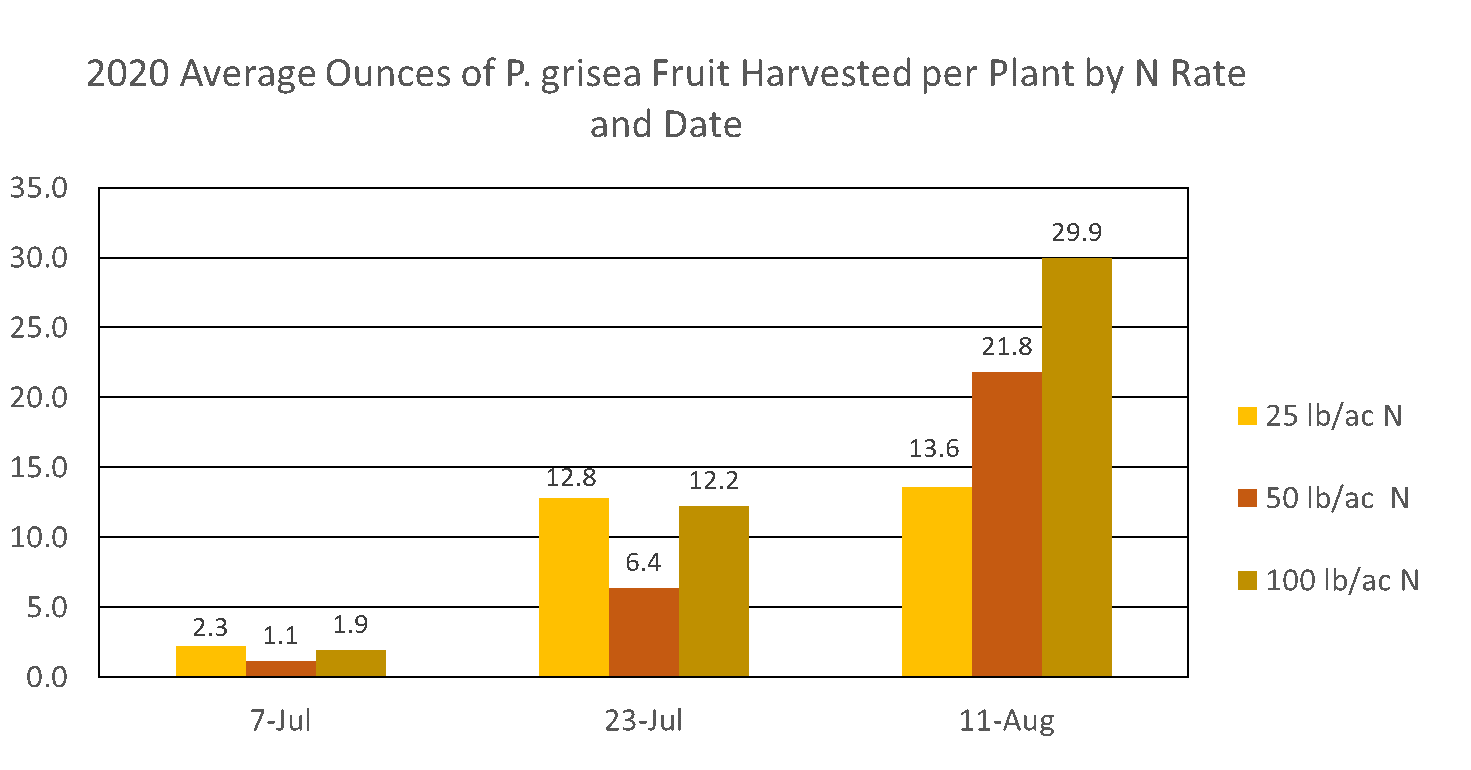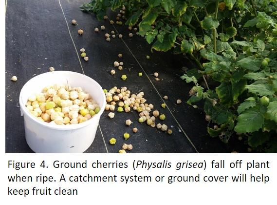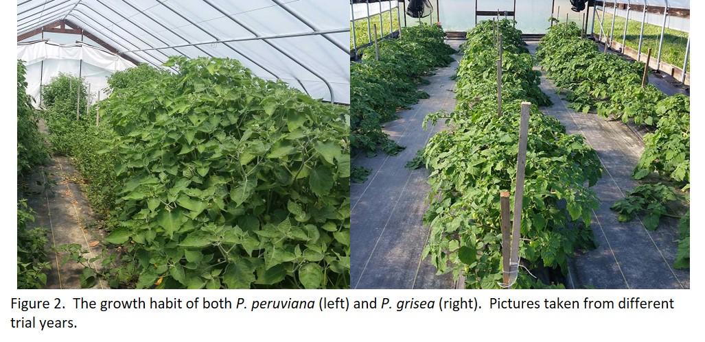 Trials conducted at Wye Research and Education Center were developed to investigate the practicality of high tunnel production of the two Physalis species to expand growing season and increase sales windows for premium prices. In 2016 and 2017, fruit yield and harvesting time was measured and pests and diseases where tracked to determine management tactics and potential profitability. For 2020, P. grisea is being trialed for nitrogen rate recommendations.