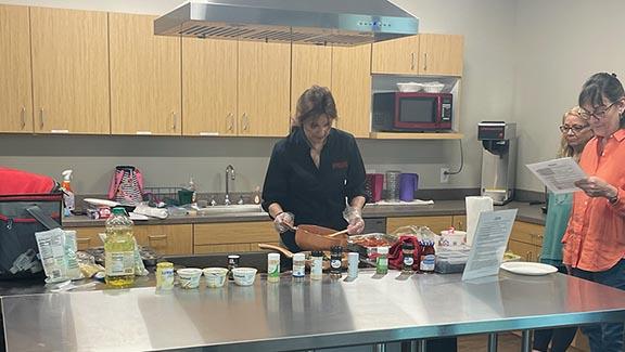Dining with Diabetes is an evidence-based, national Extension program for adults with type 2 diabetes or pre-diabetes and their families that teaches healthy meal planning and other self-management skills to help control this disease. Diet is an essential component of diabetes management along with physical activity, medication, and monitoring. Participants learn how to prepare healthy, well-balanced meals, incorporate physical activity into their lifestyle, and monitor their ‘numbers’.