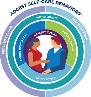 The Dining with Diabetes curriculum has been reviewed and certified by the Association of Diabetes Care & Education Specialists (ADCES) as meeting the 7 Self-Care Behaviors, which are essential for successful and effective diabetes self-management: Healthy Eating, Being Active, Monitoring, Taking Medication, Problem Solving, Healthy Coping, and Reducing Risks.