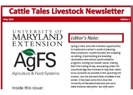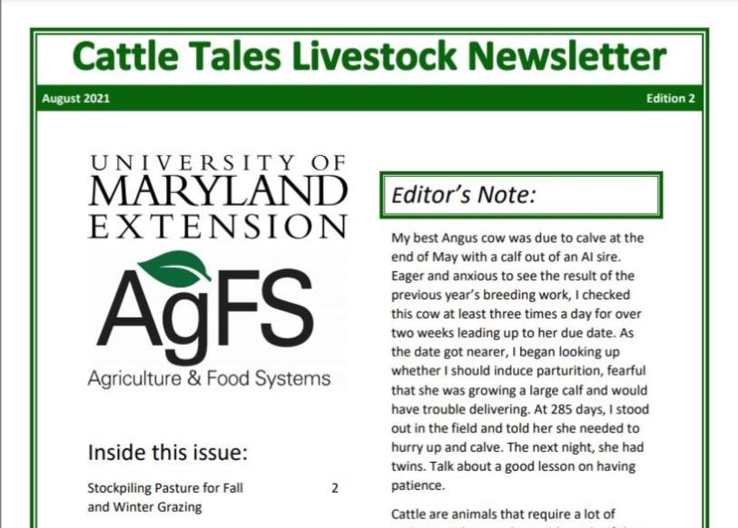 This quarterly newsletter is focused on bringing timely, relevant information to Maryland's livestock producers.